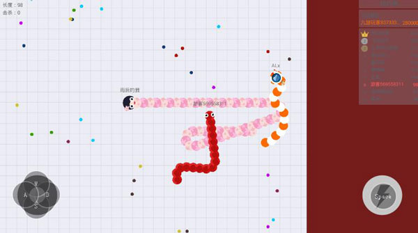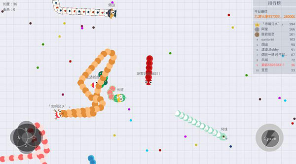 3.长按加速键,用巧妙的走位让蛇身被别人撞上,就可以吃掉他们啦。