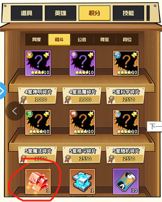 英雄界面,靠分解三星卡获得的英雄情报,首先兑换4500的,然后慢慢兑换贵的