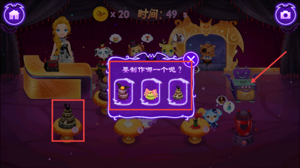4、当出现制作选择弹窗,对照左侧已售美食,选择对应款式,完成甜品制作补货。