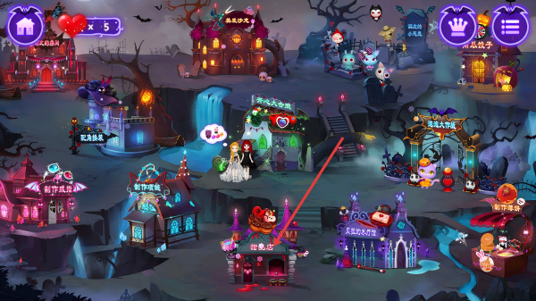 1、进入游戏场景,点击【甜品店】建筑,进入经营玩法,开启万圣节主题美食服务。