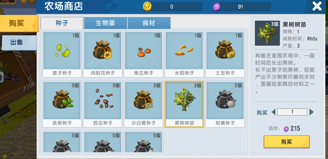 其实5级植物并非是最划算的,种植果树能够获得最大的收益。当然如果玩家长时间在线的,可以选择种植其他短时间的植物。在晚睡前,选择种植果树,是最佳的选择!这样能够获得最大的收益,当然这只是前期农场运营,后期需要制作食物,加工农作物等
