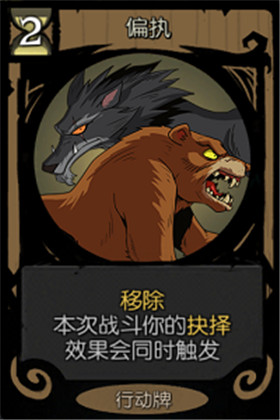 2、偏执:目前版本狼人只有三张抉择卡,一张狂怒流核心,一张万能过牌+行动,还有一张抉择路口用于无限印卡。所以如果走狂怒流的话请务必找一张偏执,然后第一回合使用嗅觉检索发动,再接上突进过牌+行动力直接启动。(小编噩梦6的时候走狂怒流没找到偏执一样过关了,只能说小木匠真的是个狼人。)