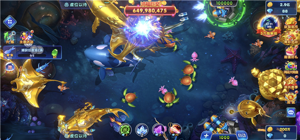 3、完成游戏中的任务即可解锁更高等级的炮弹,每个场景中最多四人,和他们抢夺大鱼,获取游戏中的特殊大奖吧。