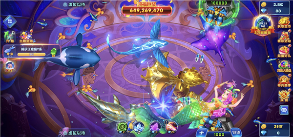 6、上线就可以领取各类福利哟,让你在深海之中利用千炮机进行捕鱼大作战。