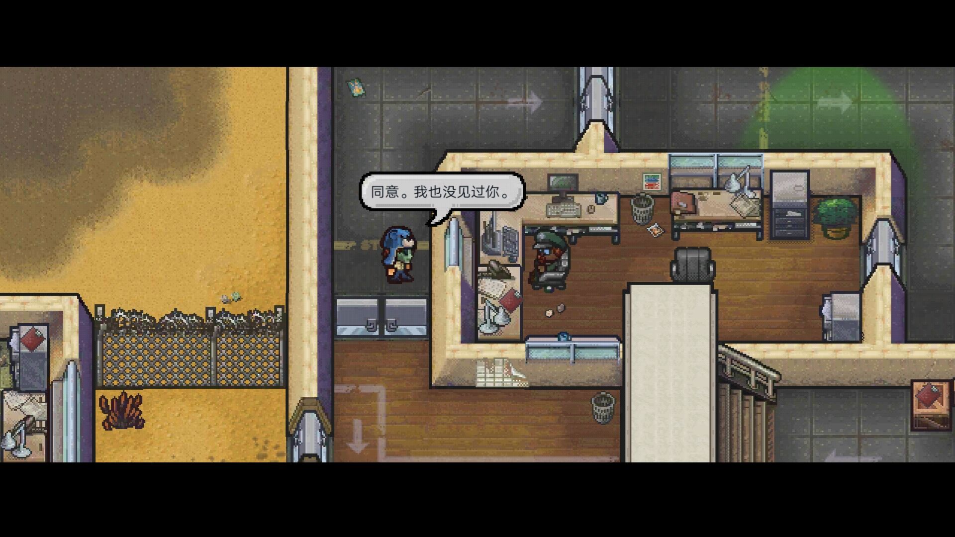 4.开门进去,自然的翻开工作台取走里面的衣服,然后来到监狱下面这一块,进入后到逃跑那边拿着假通行证按下互动,就可以出去了