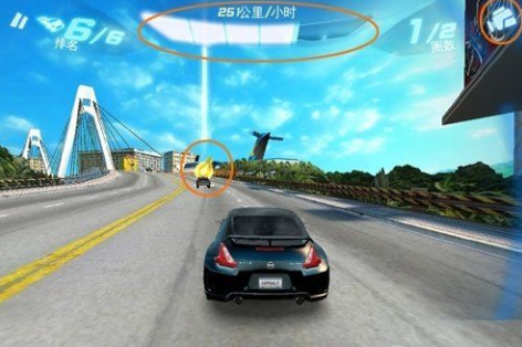 蓝色黄色的氮气道具,各色的钞票,赛道中间的双箭头。钞票当然不必多说了,多多益善,能得到就尽量获取。蓝色的氮气道具是增加一格氮气,黄色的则是增加半管氮气。双箭头的作用是将你的赛车瞬间提升至极速。