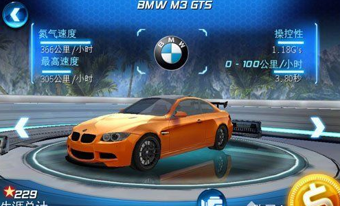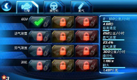 第一次玩的朋友会发现很多赛车都没有能够解锁,刚开始只有3款赛车能够选择,鉴于为以后的比赛做准备,个人推荐选择Nissan Nismo 370Z。理由是尽管操控性是3款赛车中最差的,但是氮气极速和最快速度以及加速性能都极佳,适合新手学习使用。