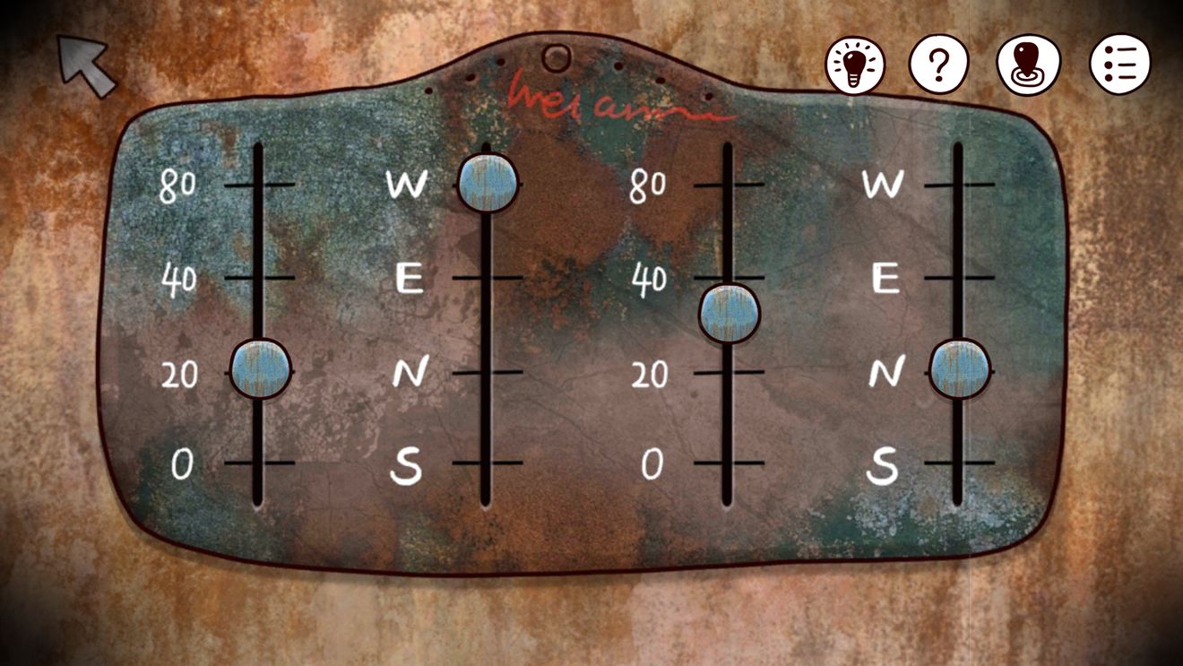 3、用五角星图案的工具打开墙上的铁盒,按里面的按钮,窗帘卷起,窗户上现出密码。(注意,第一个数字是0,不是8)