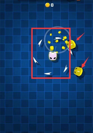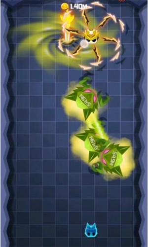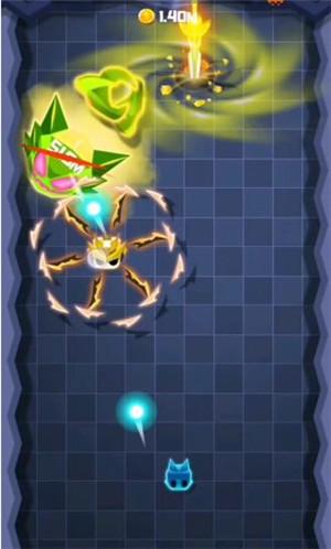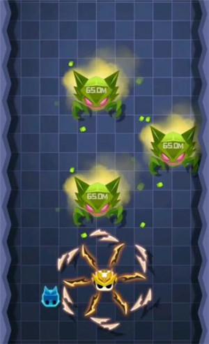 2、这款游戏中,我们要控制小人用身边旋转的飞刃击杀怪物,不要让怪物突破飞刃来攻击我们;