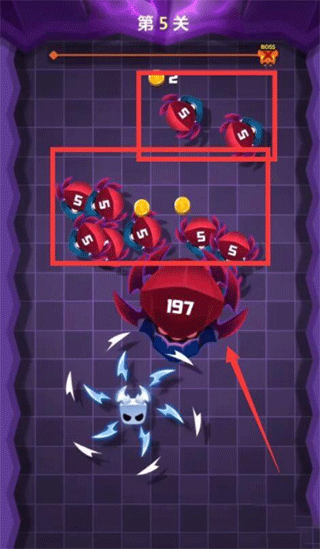 5、第5关攻击BOSS它会分裂出小怪物,所以我们要优先将BOSS击杀,不要管小怪物;