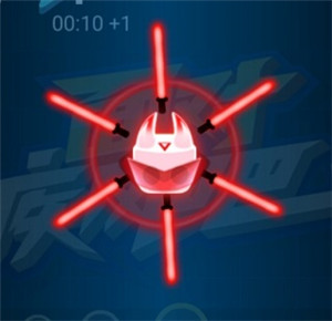 3、当显示会有一大波怪物来袭时,我们就可以将形状是向上箭头的暴走吃掉,这样我们的飞刃就会开始高速旋转,这样就可以抵御大量怪物了;