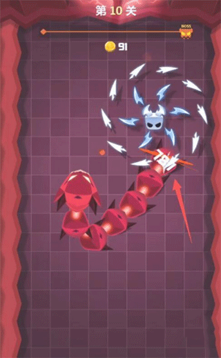 6、第10关的BOSS弱点是尾巴,我们要把它的尾巴一节节击杀,才能将它击败。