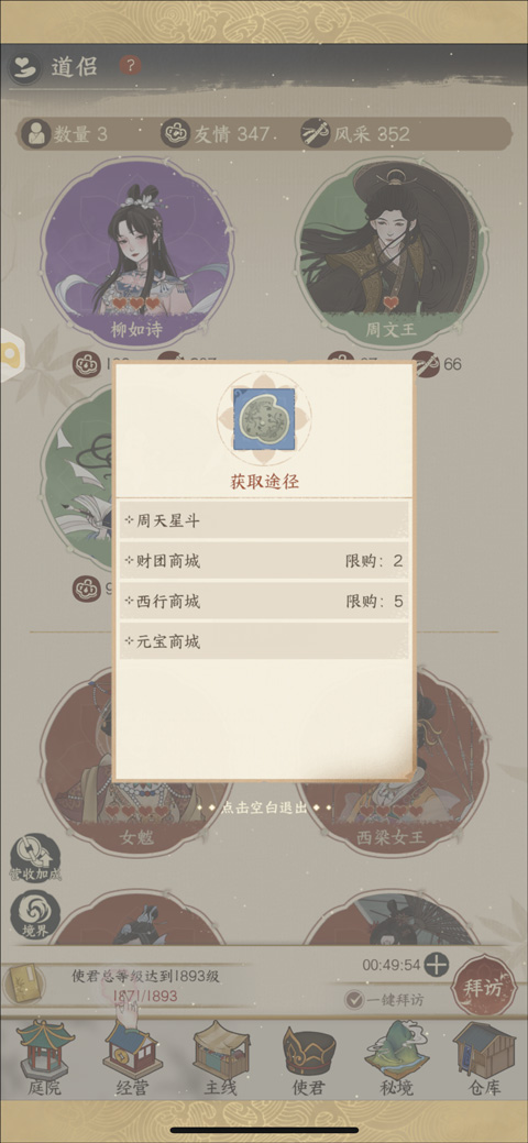 2、拜访道侣后根据道侣风采值增加尘缘值。