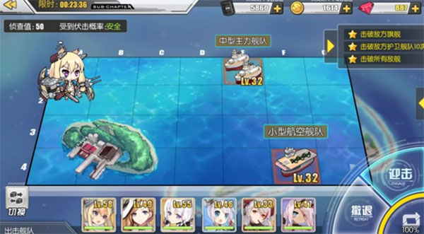 4、三星条件:全图8个小兵+2个精英=10战,需击破25次护卫舰