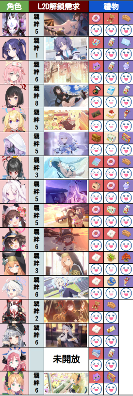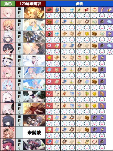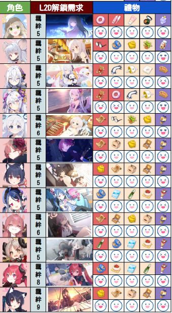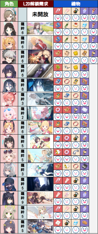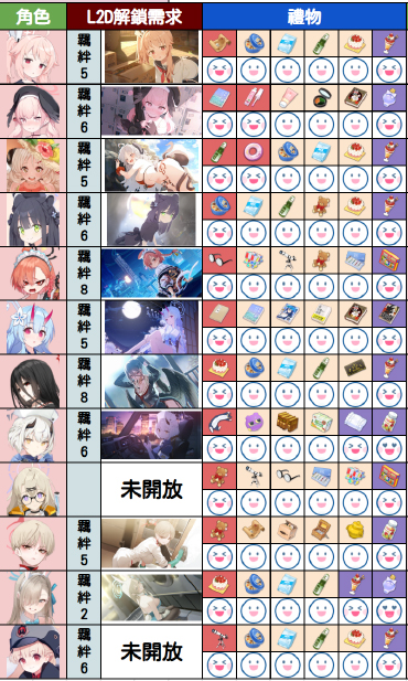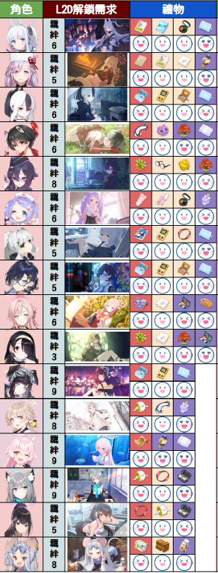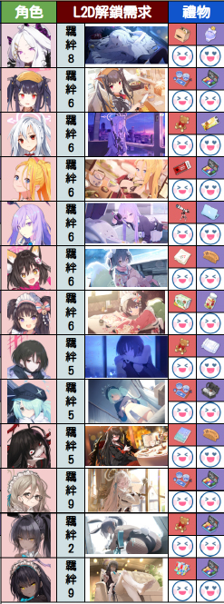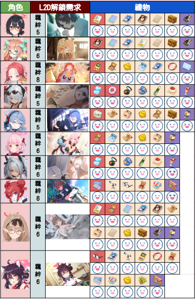 最后下方为大家分享一下夜猫大佬整理的好感度数值增加表以及部分学生的礼物喜好表,希望可以为大家带来帮助