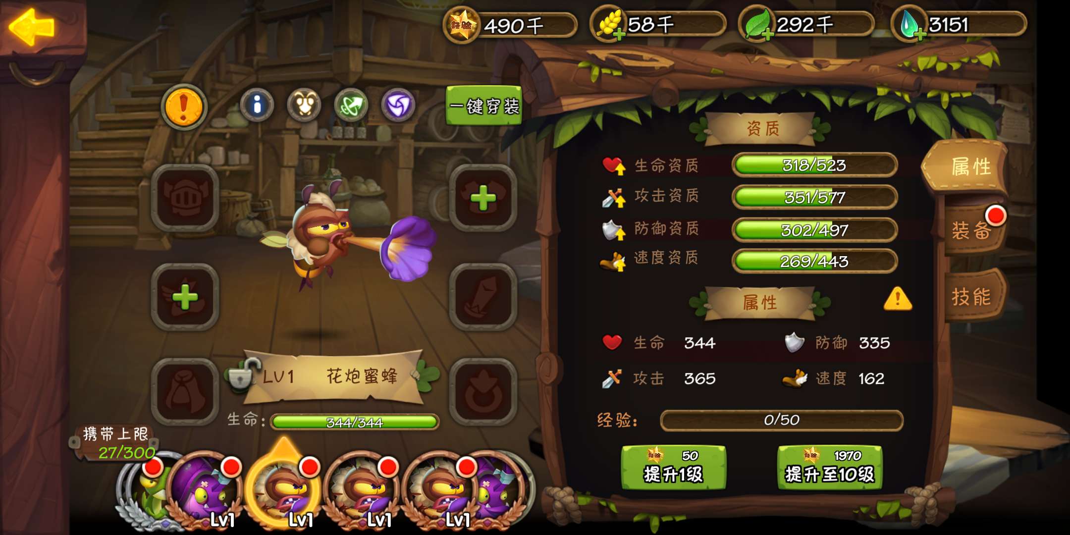 2、但是有一点属性是花炮蜜蜂非常需要的,那就是攻击力。花炮蜜蜂在第一次进化的时候,会获得一个范围治疗技能:蜜糖,这个技能可以说是花炮蜜蜂的核心技能。而蜜糖的治疗量是花炮蜜蜂攻击力的50%,也就是说,花炮蜜蜂的攻击力越高,它的治疗量也就越多。