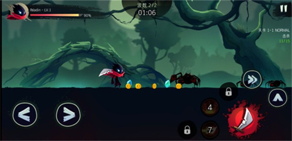 2、操作非常简单,左边移动,右边则是跳跃和技能。