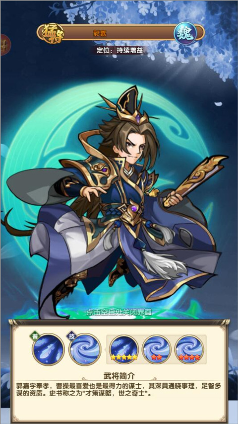 这个阵容是小编首推的一个组合,属于武力输出较高的阵容,其中神孙策拥有较强的群体输出技能,同时还提供了超强的血线斩杀效果,再加上甘宁的忽视防御以及郭嘉的回怒,整体上为阵容提供了持续输出能力。