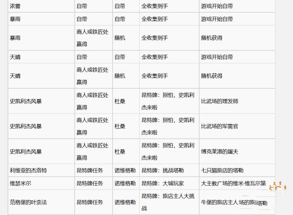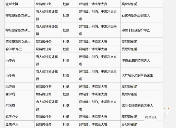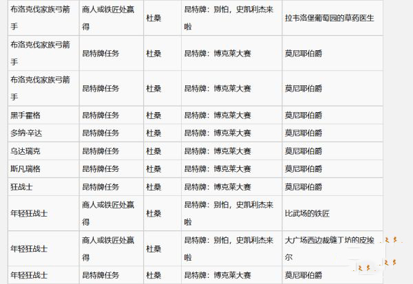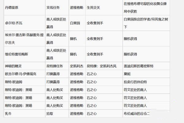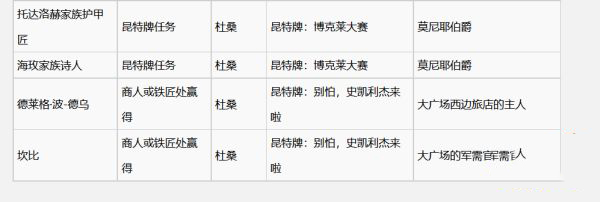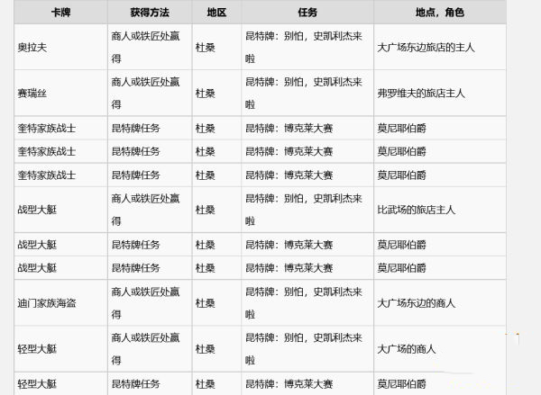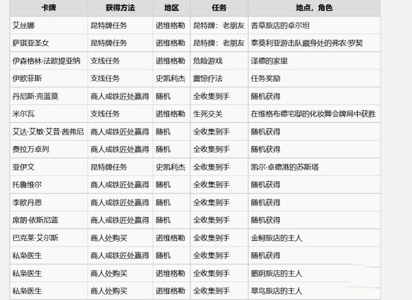 诺维格瑞的昆特牌会出现在诺维格瑞主城、金樽酒馆、迪彻斯特、松鼠党商人、循线追查任务、生死交关等任务中。