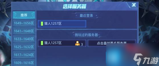 2、在我玩过的服务器没有看到想要玩的区服的,玩家可以通过点击“点击查找更多服务器”,这样就能完全的查找到你所玩过的区服了。点击区服,然后再点击开始游戏,就能更换到以前的区服中去了。