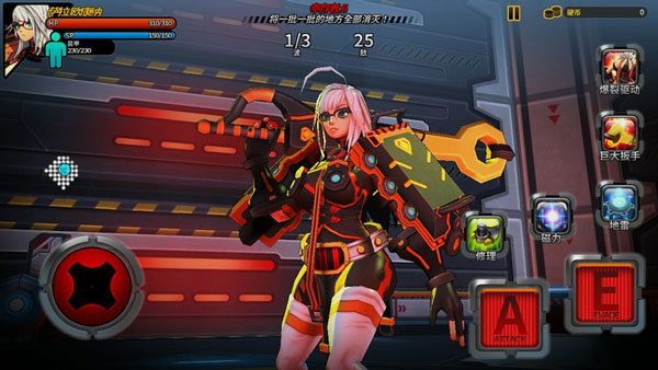在面对大堆敌人的时候用技能进行组合是不错的选择,首先用磁力释放在一个区域,因为磁力有2秒的延迟,所以迅速在这个区域放上地雷。在两秒后大量机器人被吸引过去而面对的则是我们释放的地雷,最后的残兵直接用巨大扳手带走。这是一套不用耗血的连招面对机器人多的情况很实用。