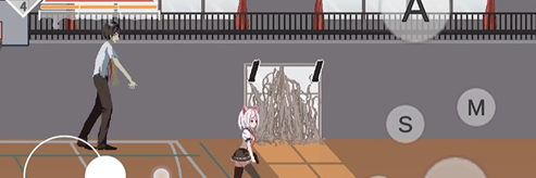 3、教室里面也有一个丧尸,绕过来之后继续向右走下楼