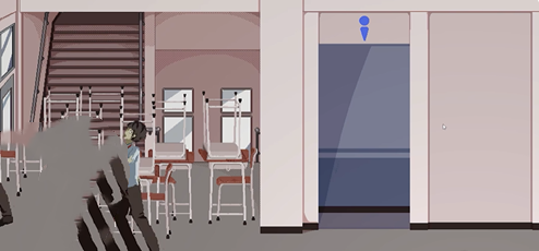 3、在教室的走廊位置会触发cg,之后来到办公室。