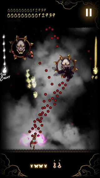 《食魂徒》在弹幕设计上可圈可点,弹幕与背景的色差设计较为优秀,很容易区分弹幕种类,但小怪种类就比较单一了,几个小怪重复的从第一关到最后一关出现,