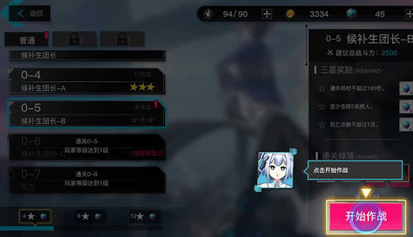 玩家进入关卡之后,选择自己可以开始的关卡,点击右下角开始作战即可开始游戏啦!