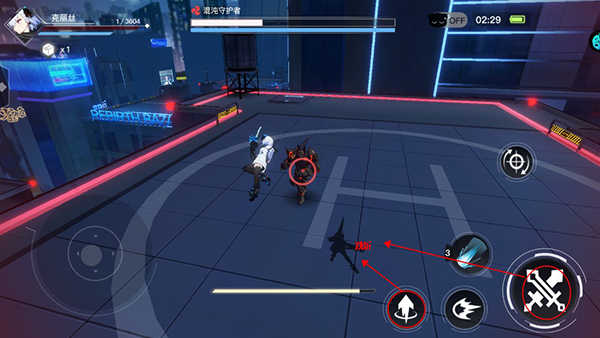 玩家可以点击右下方的冲击波图标,控制人物快速移动,躲避怪物的攻击。