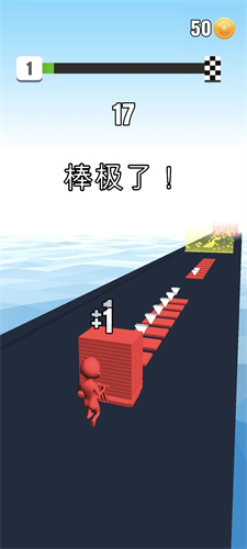 4、到达关底后,玩家需要连续点击屏幕,以尝试将手中的砖块抛得更远;
