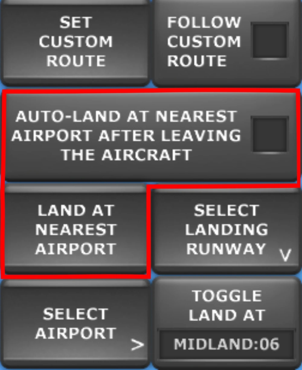 启用后,当玩家在飞行途中离开飞机时,自动降落功能将自动启动。飞机将降落在最近的机场。