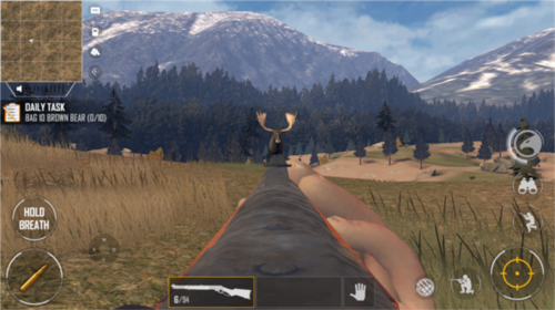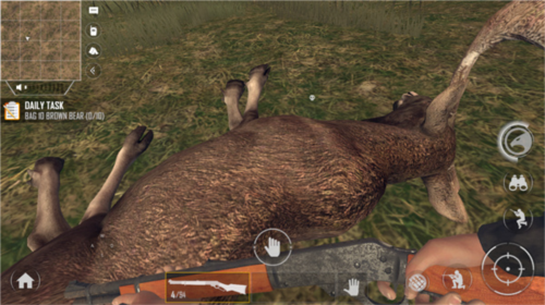 1、玩家需要控制自己的准星,找到合适的视角,一击击杀要狩猎的动物,获取战利品。