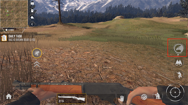 1、屏幕中心范围控制准星,右下角发射子弹,左下角开镜,开镜后镜头边缘滑动可以增加放大倍数,还可以在右下开启红外线;屏幕左右侧都有移动按钮,可以让猎人左右移动来寻找合适视角,但移动范围很有限。