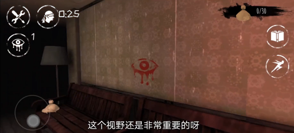 二楼地形很迷,场景很相似,看鬼的视角也不知道它在哪。所以最好不要贸然行动,鬼不在就大胆的搜,出去时看看有没有警告,有立刻缩回房间来。恐怖之眼走路时遇到就往回跑。