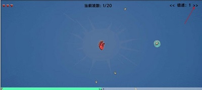 3、进入游戏后,使用手指拖动细胞,去消灭其他入侵的细胞,保护好心脏,在右上角可以设置游戏的倍数,加快游戏进程。