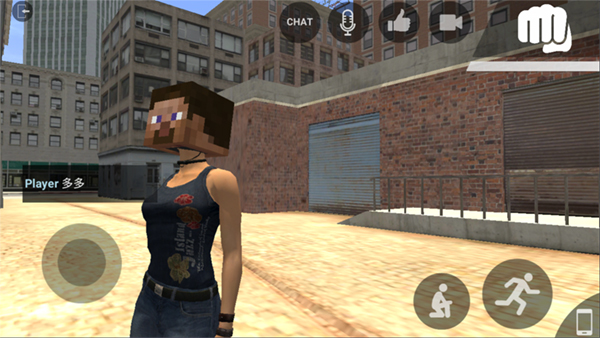 进入游戏里,可以先点击【chat】对话,左边的圆圈是前进或者后退,右边则是蹲下和跳跃