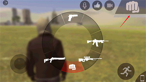 3、点击游戏右上角的拳头即可切换武器。