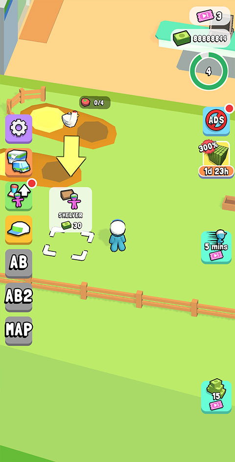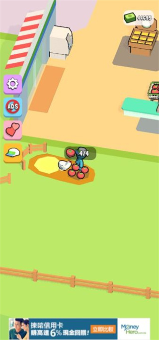 1、首先我们进入我的迷你超市游戏,第一步就是先解锁一些货架,开始售卖产品;