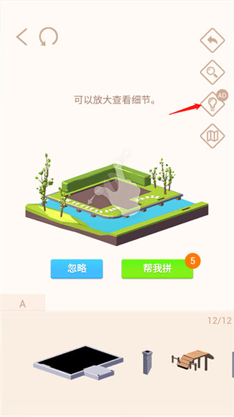 7、另外如果玩家不知道零件的正确位置后,可以点击小灯泡来获取提示