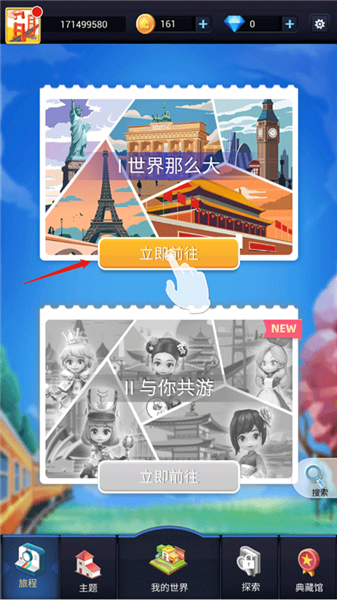 1、在游戏界面中点击左下角旅程,然后点击立即前往