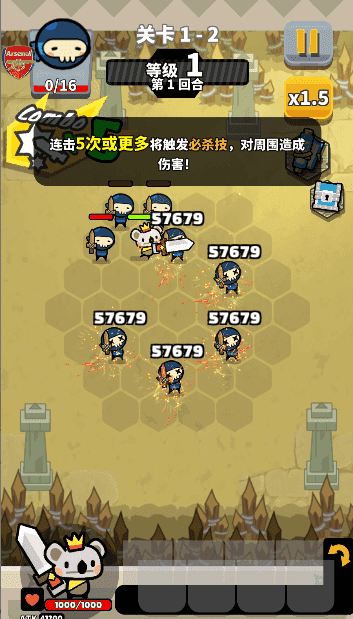 1、注意需要连招消灭敌人,连击5次或更多将触发必杀技
