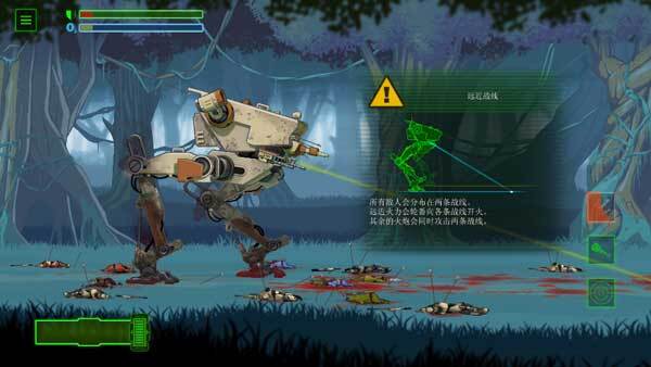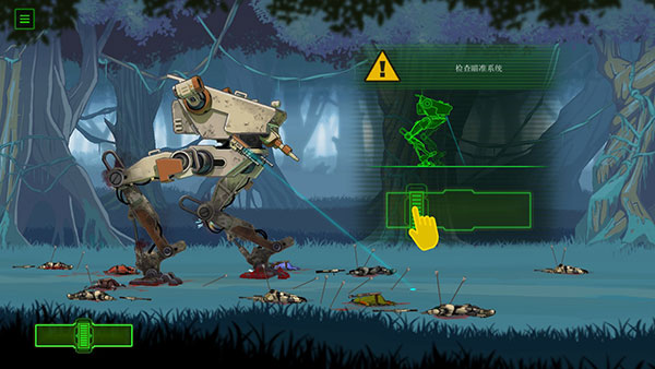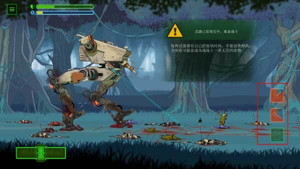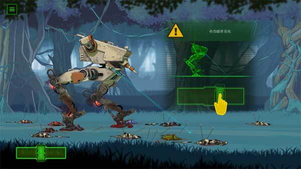 1、打开游戏后会先播放一段剧情介绍,等这段故事讲述完毕就能开始游戏了。首先要做的是检查机器的瞄准系统,你可以点击左下角的按钮来控制左右移动。