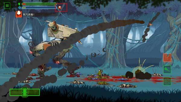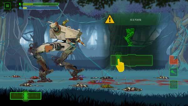 3、当敌人攀爬到机器上时,为避免机器受损,需左右晃动驾驶舱,把敌人晃下去。