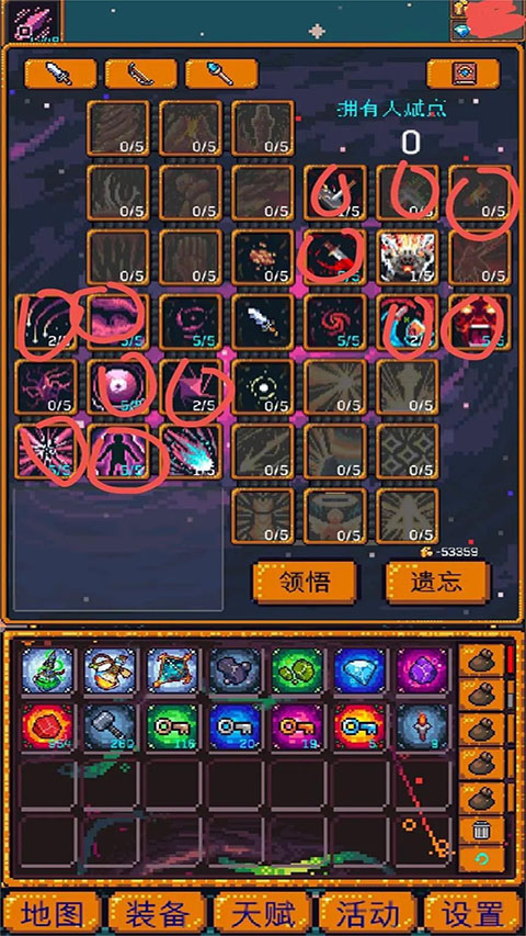 2、通过杀敌来获取新的技能与属性,适当的选择与搭配可以达到事半功倍的效果。