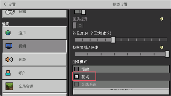 最后,点击【图像模式】,切换成【花式】就行,毕竟咱们这是手机,不配拥有【光线追踪】。