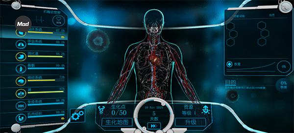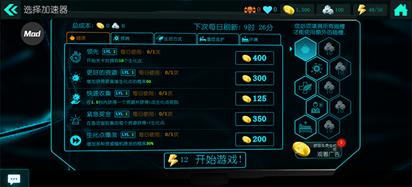 5、最后感觉困难的小伙伴还可以通过点击游戏内置mod功能来获取生化点和游戏加速。