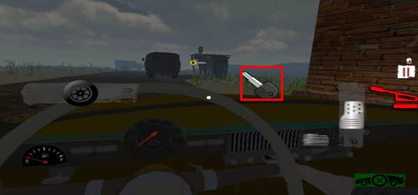 2、坐进驾驶室后,第一步是启动引擎。点击屏幕中的钥匙图标来点火;