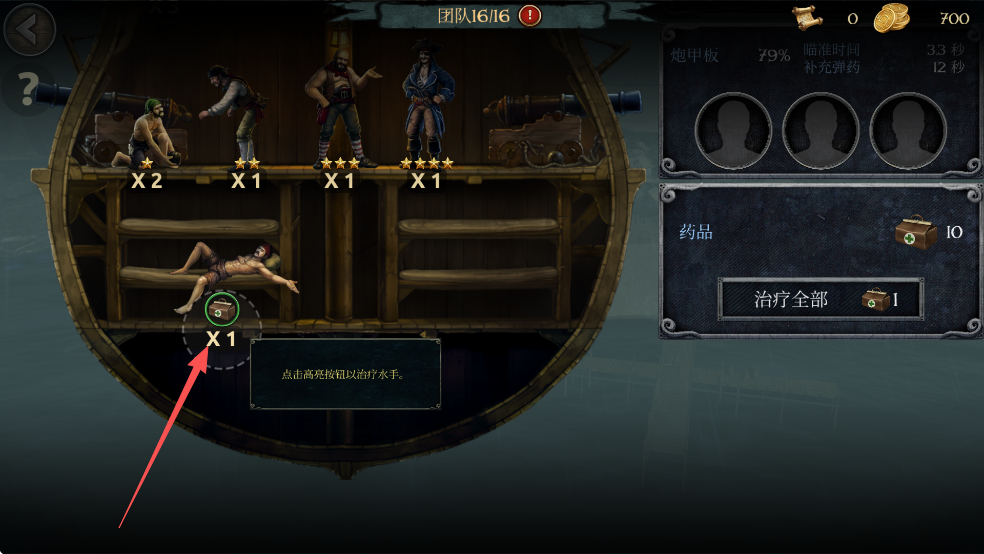 点击药箱按钮以治疗水手。