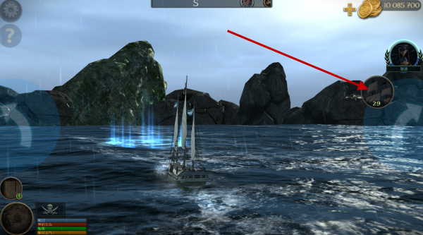 4、海水中的图标代表的风向,所以我们需要点右侧的按键来顺风航行!